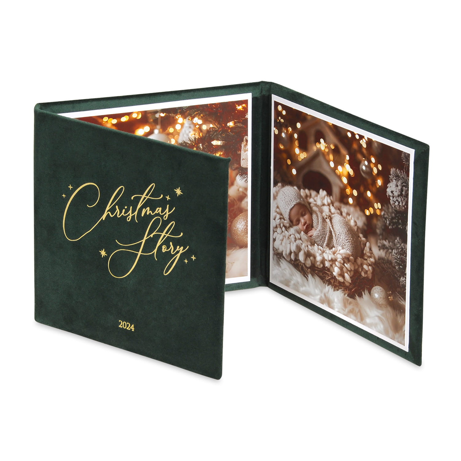 MINI album świąteczny w eleganckiej welurowej oprawie w kolorze butelkowej zieleni to wyjątkowe miejsce na trzy ulubione fotografie. Złoty napis „Christmas Story 2025” nadaje mu niepowtarzalny charakter i sprawia, że album staje się piękną pamiątką świątecznych chwil. Idealny jako drobny prezent lub dodatek do świątecznej kolekcji wspomnień.